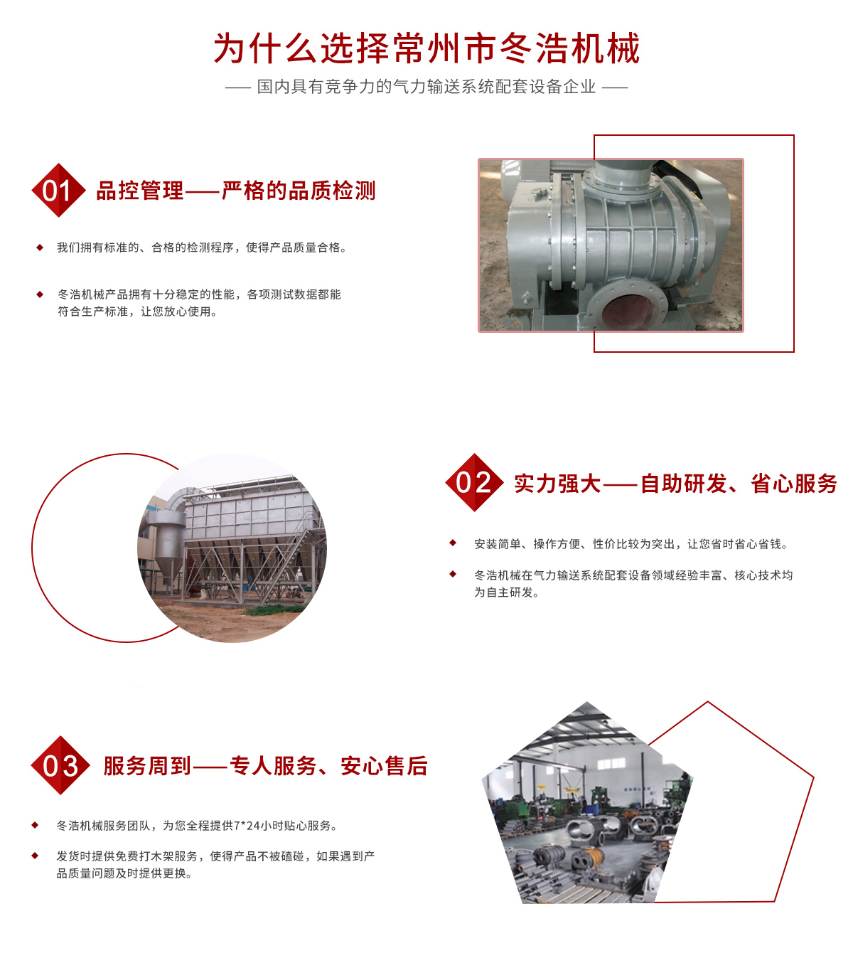 常州市冬浩機(jī)械有限公司占地面積5000平方米,擁有一支專業(yè)的科技研發(fā)團(tuán)隊(duì)和配備專業(yè)的生產(chǎn)設(shè)備。專業(yè)致力于氣力輸送系統(tǒng)配套設(shè)備的研發(fā)、生產(chǎn)及銷售。產(chǎn)品在實(shí)際應(yīng)用中不斷創(chuàng)新、不斷升級(jí),現(xiàn)已對(duì)接實(shí)現(xiàn)自動(dòng)化、智能化、人性化。實(shí)踐證明公司生產(chǎn)的吸糧機(jī)系列、高溫羅茨風(fēng)機(jī)系列、關(guān)風(fēng)機(jī)系列、氣力輸送設(shè)備系列、特殊工況訂制系列的產(chǎn)品被廣泛運(yùn)用于石油化工、油脂、化工干燥、除塵、冶金、環(huán)保、電子、煤炭、建筑、電力機(jī)械、糧食、飼料等行業(yè)。為解決輸送、搬運(yùn)等環(huán)節(jié)中節(jié)約大量的人力、財(cái)力;從而提高了生產(chǎn)效率。